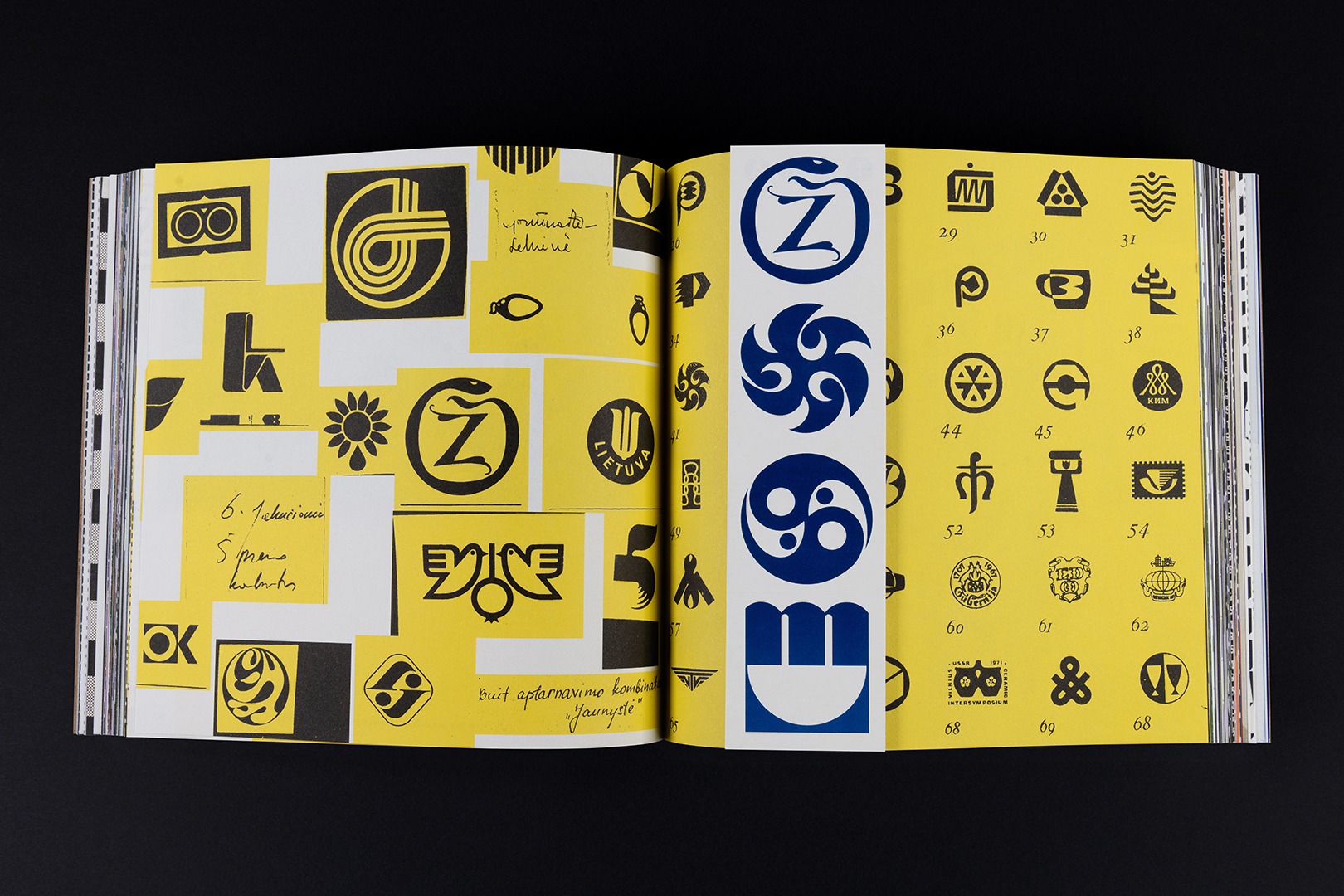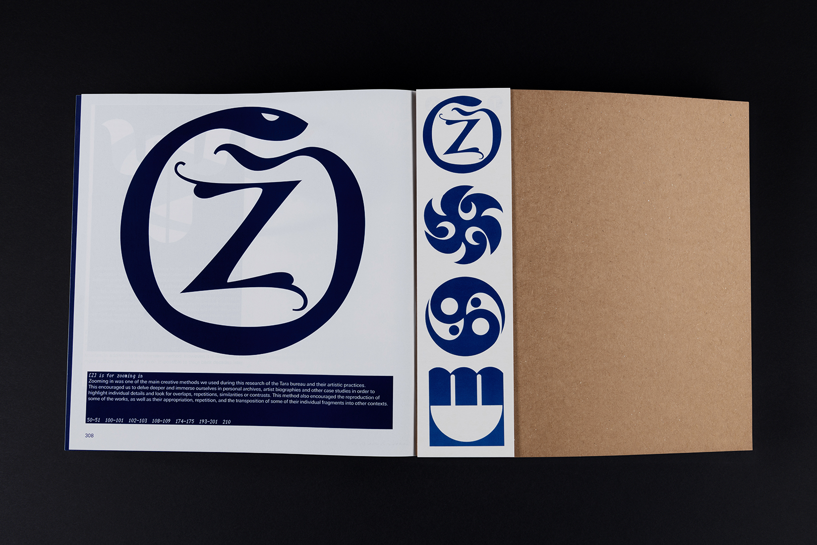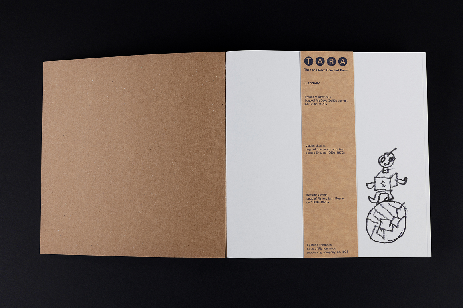 The Glossary was inspired by the logos, designed by the artists of the Tara bureau. It was the idea proposed by Deimantė Jasiulevičiūtė and Zuzana Kostelanská. It started with their focus on logos that felt more alive, each having its own voice and identity – like an A resembling a flame or a growing flower, and a Z resembling a snake, a symbol often seen in Lithuanian mythology. This process led to search for additional letter variations, eventually discovering almost the entire alphabet, which is how the idea of creating a glossary was born.