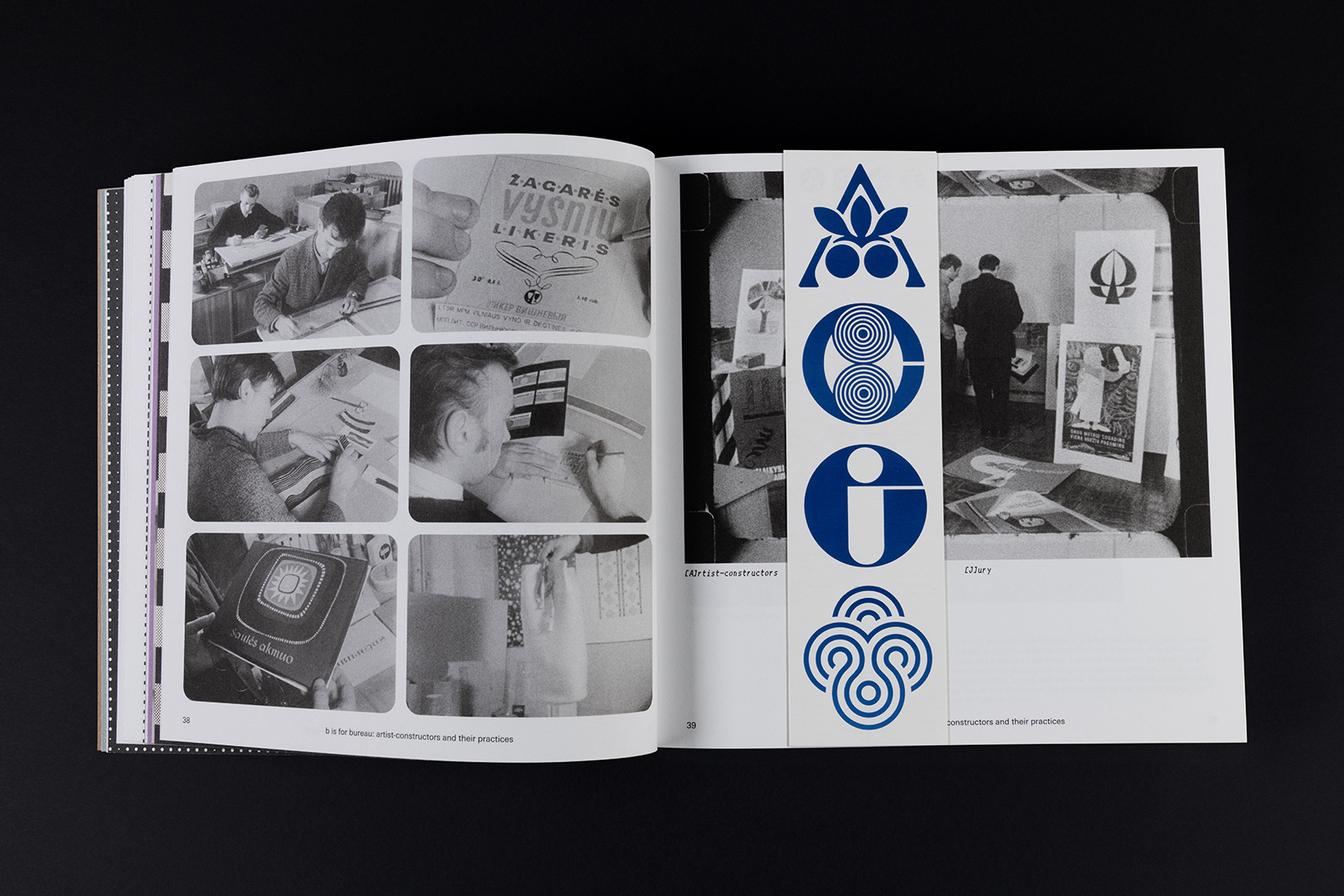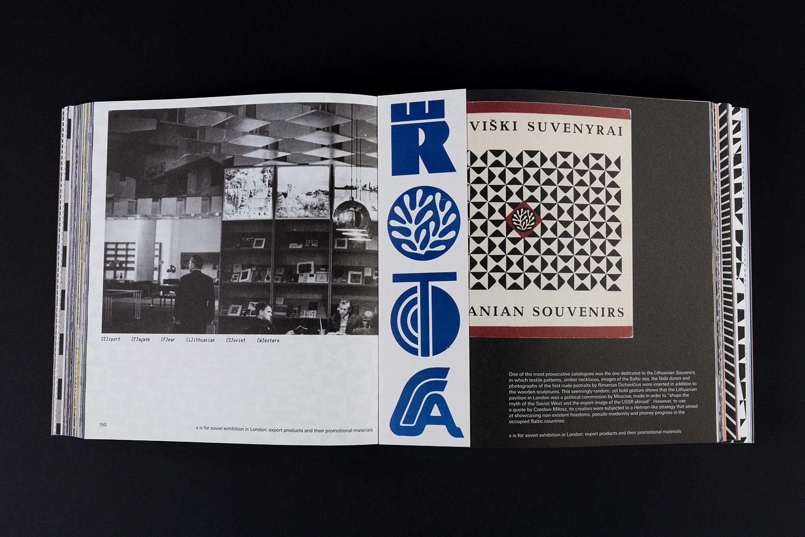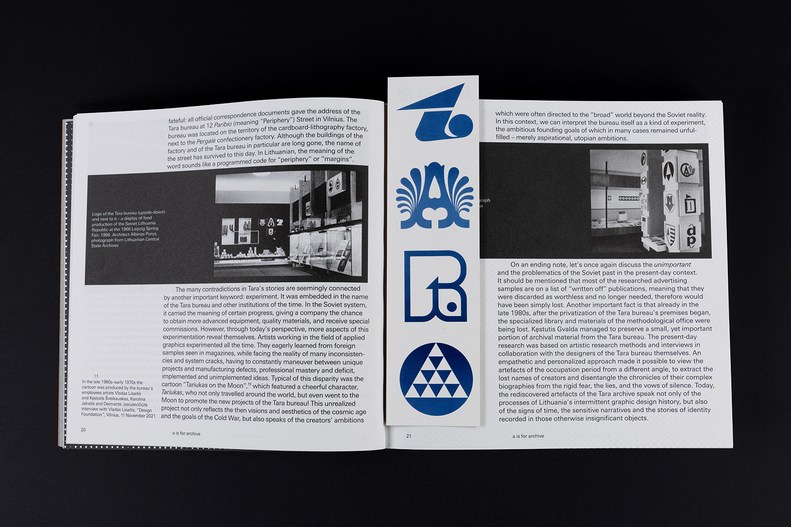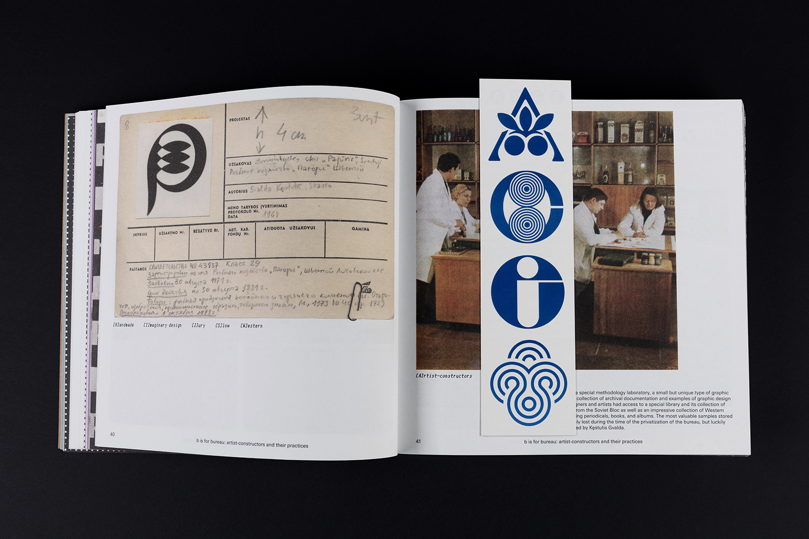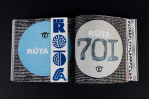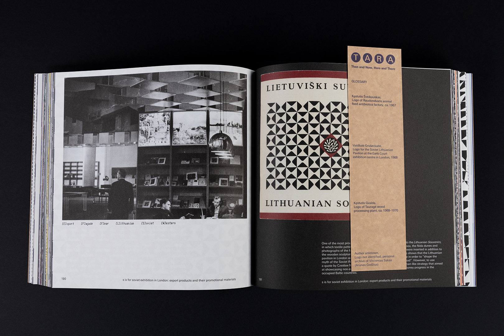 The book was designed as an experiment in graphic design, introducing a playful way of getting to know the Tara bureau’s samples through thematic ABC chapters and Glossary navigation. Throughout the book, the Glossary keywords are marked like stamps on packaging, thus allowing to navigate between Then and Now, between Here and There, providing a slightly more contextual introduction to the period of the Tara bureau, and the intentions and practices of its artists. When creating the Glossary, we searched for reflections of identity, signs of time, and other codes of meaning. The attempts to explore fragmented surviving examples from a contemporary perspective involved recreating a small segment at a time, investigating the biographies of individual artists or fragments of individual works by using the essential zoom-in method. The incompleteness of the Glossary also reflects the fragmentary nature of the Tara bureau’s archive, encoded in its very identity.